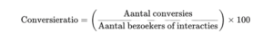 De conversieratio (of conversiepercentage) is een maatstaf die aangeeft welk percentage van de bezoekers van een website, campagne, of andere marketinginitiatieven een specifieke gewenste actie onderneemt. Deze gewenste acties kunnen variëren afhankelijk van de doelen van je bedrijf, zoals een aankoop doen, een formulier invullen, een nieuwsbrief abonneren, of een andere actie die waardevol is voor jouw organisatie.